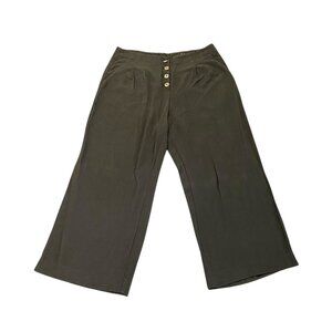 LOFT Pants Womens 12 Olive Green High Waist Wide Leg Crop Pleated Button Front