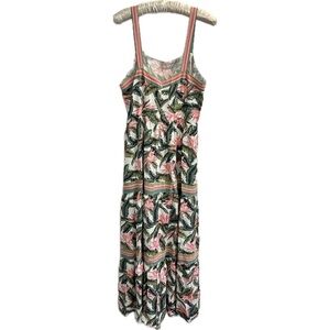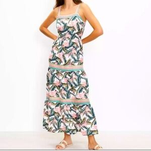 LOFT Paradise Tiered Maxi Tropical Linen Dress Size 8