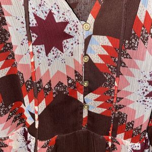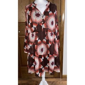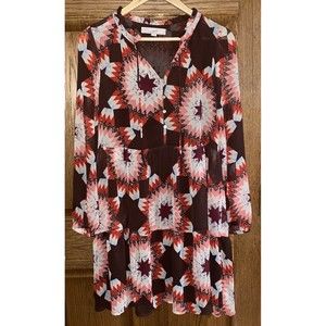 LOFT Patchwork Tie Neck Pocket Dress Size Small Boho Western Rodeo