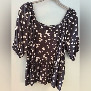 Chic top with cream abstract pattern. Soft fabric and elegant design.