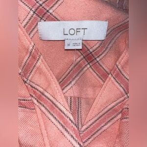 LOFT Peach Tiered Plaid Preppy Shirt Dress with long sleeves Size Medium NWOT