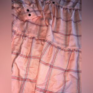 LOFT Peach Tiered Plaid Shirt Dress with long sleeves