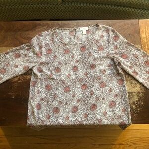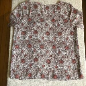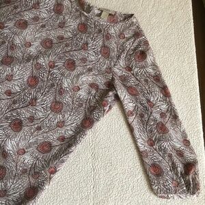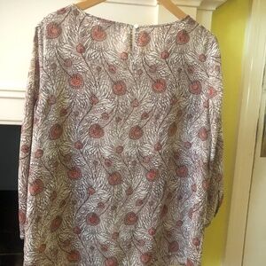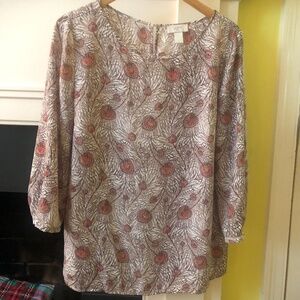 LOFT Peacock Feather Pattern Blouse Pink Tan - Size Large
