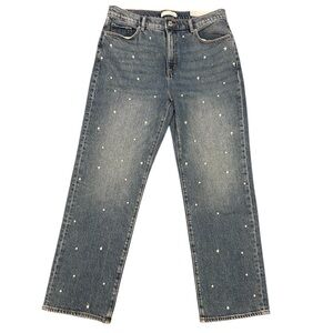 LOFT Pearl High Rise Straight Jeans in Authentic Vintage Mid Wash Embellished