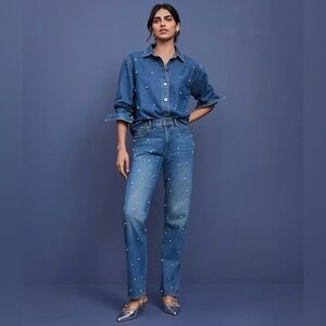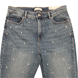 LOFT Pearl High Rise Straight Jeans in Authentic Vintage Mid Wash Embellished