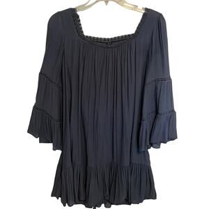 LOFT Peasant Dress Womens XS Dusty Blue Bell Sleeve Tiered Ruffled Mini Boho