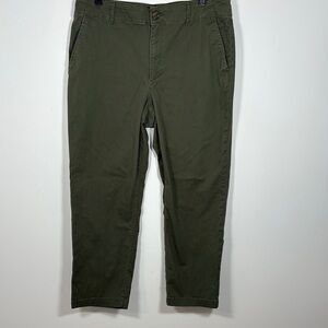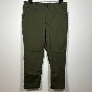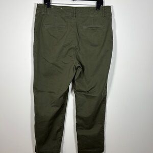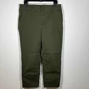 LOFT Perfect Straight Leg Pant 12 Chino Cotton Blend Olive Army Green Stretch