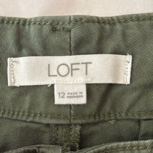LOFT Perfect Straight Pant 12 Chino Cotton Blend Olive Army Green Khaki Stretch