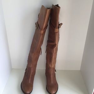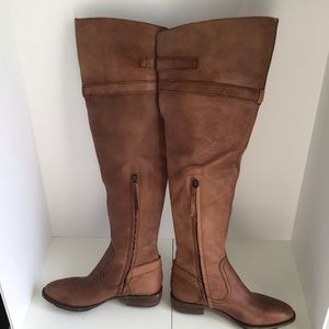 LOFT Peter Over-the-Knee Riding Boot Gorgeous shade of brown / chestnut. Leather upper, heeled riding boots, inner side zipper, side buckles. Over the knee (OTK). Some darkened areas and natural patina on the leather. Heel height: 1.25" Very good condition