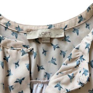 Add a soft, charming touch to your wardrobe with this LOFT Petite blouse in size XSP. Featuring a lovely bird print on a cream background, this sleeveless top has a relaxed fit and subtle pleating at the neckline. Lightweight and breathable — perfect for layering or wearing alone in warmer weather.