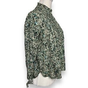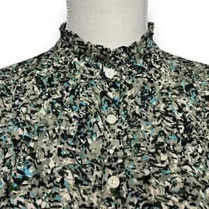LOFT Petite Button-Up Olive and Black High Collar Blouse Size XSP