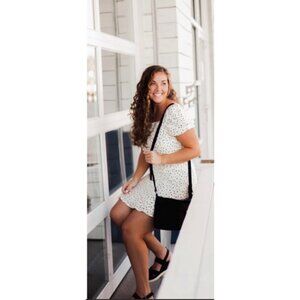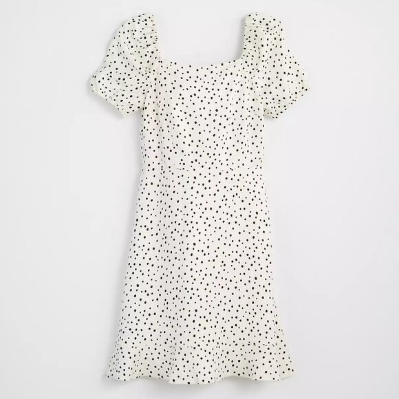 LOFT ~Sweet White and Black polka dots fit and flare tie-back dress in size 00 Petite *. Measurements below.