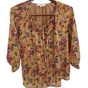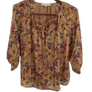 LOFT Petite Floral Boho Tie Neck Blouse MP