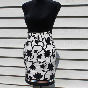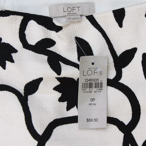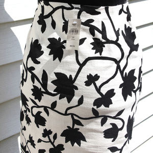 New With Tags Ann Taylor Loft Pencil Skirt, black & white floral print. Side zipper, front slash pockets. Approximate measurements in tape pics.