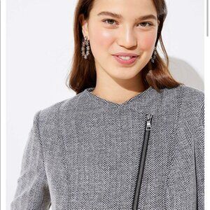 LOFT Petite Gray Herringbone Moto Jacket XSP