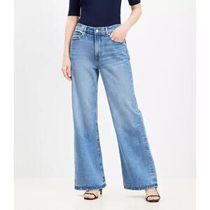 LOFT Petite High Rise Wide Leg Jeans Bright Mid Indigo Wash 28/6