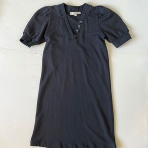 This is a LOFT Petite Mixed Media V-Neck Shift Dress in color Coastal Grey in size X-Small Petite. This item is in Excellent Used condition.