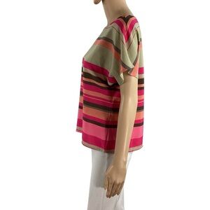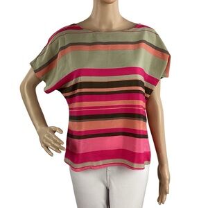 LOFT Petite Pink Multicolor Stripe Dolman Blouse MP
