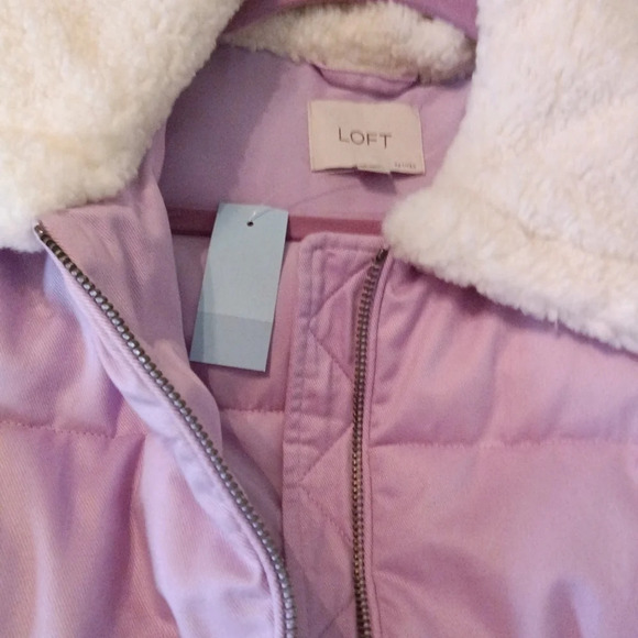 LOFT Petite Shearling Collar Puffer Jacket in Sheer Violet Zip Up Size S NWT