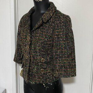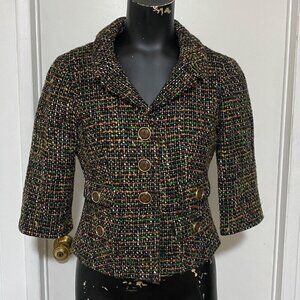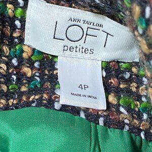 LOFT Petite Tweed Jacket in Green Brown Size 4P