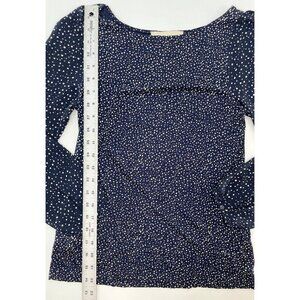 LOFT Petites Blue Polka Dot Boat Neck Lyocell Blend Long Sleeve Blouse Size SP