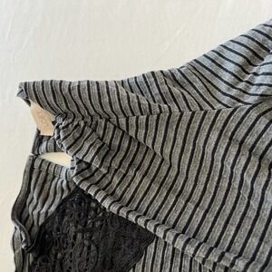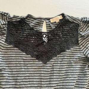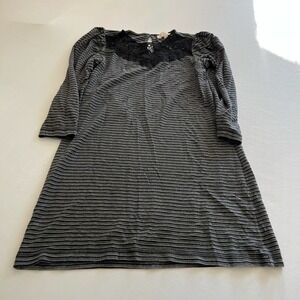 Loft Petites Gray Dress black stripes lace trim SP