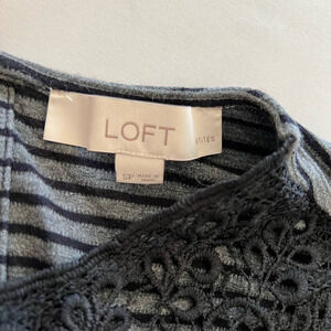 LOFT Petites Gray Dress black stripes lace trim SP