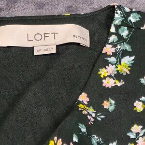 Feminine and flattering LOFT Petites floral wrap-style dress in a dark green wildflower print.