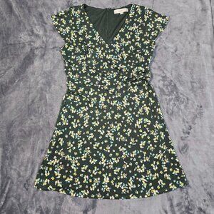 LOFT Petites Green Floral Flutter Sleeve Wrap Dress Size 6P