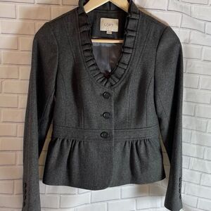 LOFT Petites Grey Woven Peplum Wool Blend …