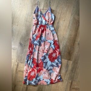 LOFT Petites Maxi Dress 00P Multicolor Floral Spaghetti Strap Elastic Waist