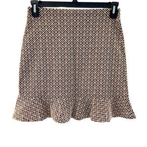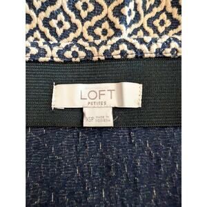 LOFT Petites Navy Cream Diamond Flare Hem Knit Skirt XSP Pull-On Textured
