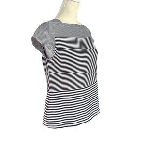 LOFT Petites blue and white striped short sleeve top women's size XSP
