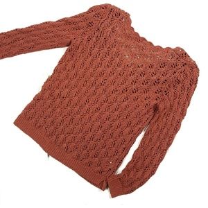 LOFT Pink 3/4 Sleeve Open Weave Sweater