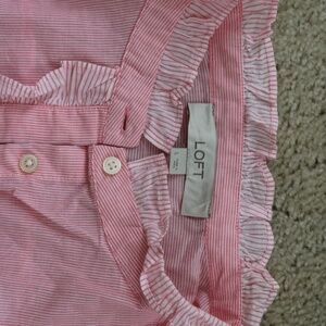 This pink blouse from LOFT is a perfect blend of elegance and versatility, making it a must-have in your wardrobe. Crafted with attention to detail, it offers a comfortable fit and a stylish look suitable for various occasions. The soft pink hue adds a touch of femininity, ensuring you stand out effortlessly.