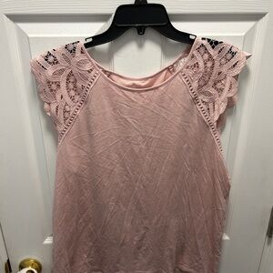 LOFT Pink Blouse with Elegant Lace Sleeves