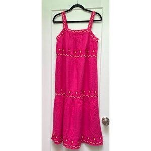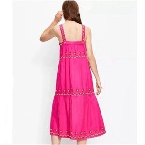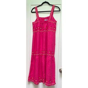 💕 LOFT Pink Embroidered Tiered Boho Midi Dress - Size M - NWT