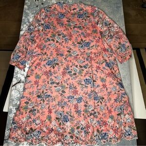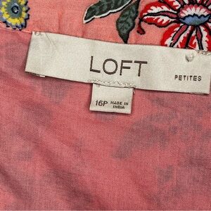 LOFT Pink Floral Swing Dress 3/4 Sleeve Lined Embroidered Scalloped Hem Size 16P