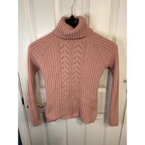 LOFT Pink Lambswool Angora Blend Cable Knit Turtleneck Sweater Size Medium