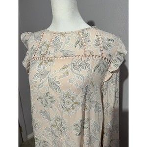 LOFT Pink Paisley Print Crew Neck Puff Long Sleeve Tunic Top Size XS. 100% polyester Ruffle sleeves Long sleeves No flaws Button closure