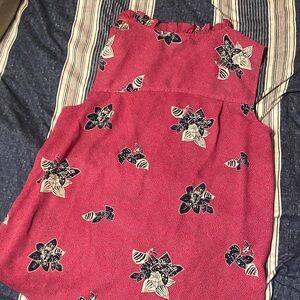 Chic pink blouse with delicate patterns. Features stylish ruffles. Perfect for any occasion.