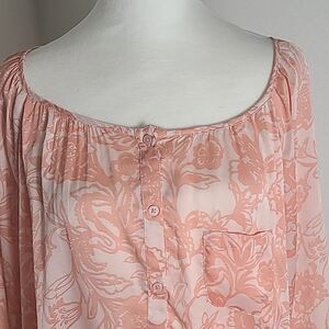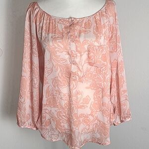 LOFT Pink & Peach Floral Blouse, Longsleeves, Size Large
