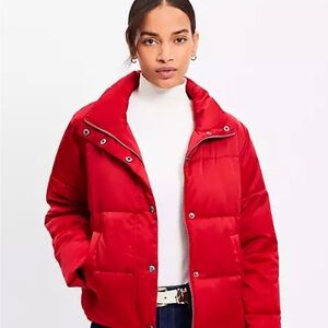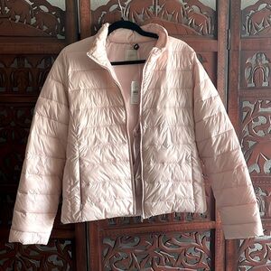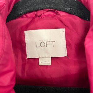 LOFT Pink Puffer Coat Zip Pockets Nylon Shell Insulated