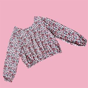 LOFT Pink & White Floral Long sleeved Top Blouse Size M Like New