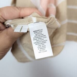 LOFT Pink Yellow Stripe Open Front Lightweight Kimono Cardigan. Yellow, white, pink, beige striped pattern. Open front style cardigan. Perfect for warmer weather or layering in cooler weather. 56% Acrylic, 44% Rayon.