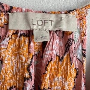 LOFT Pink and Orange Floral Tasseled Halter Casual Summer Ladies Tank, M