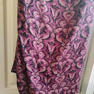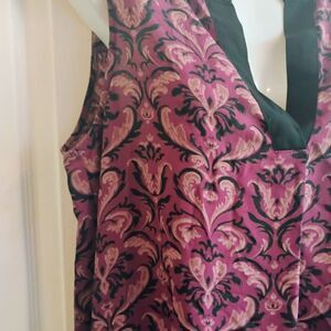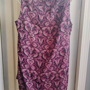 This chic sleeveless blouse from LOFT showcases a vibrant pink pattern against a black backdrop, offering a stylish and comfortable fit. The lightweight fabric and intricate design make it perfect for both casual and semi-formal occasions.