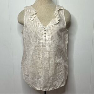 LOFT Pintucked Ruffle Collar Sleeveless Blouse Top Ivory Tan Animal Stripe MP
