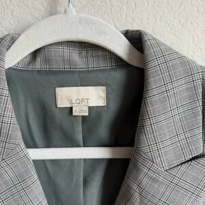 LOFT Plaid Blazer Jacket Women’s Size 6 Gray Pink 2 Button Career Casual