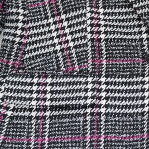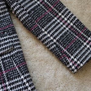 Stylish plaid blazer with a modern fit. Features a striking black and white pattern with pink highlights. Ideal for both office and casual settings.